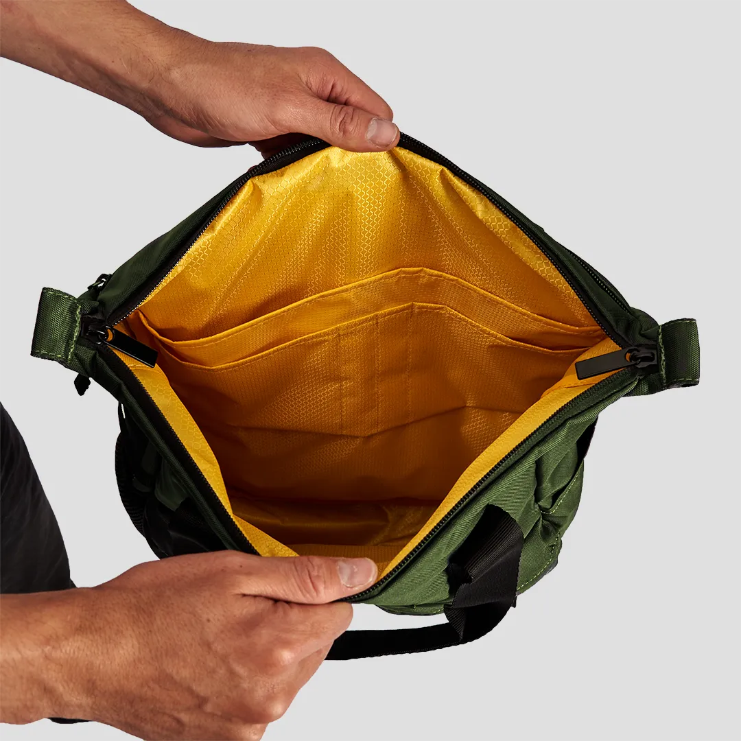 ¿Buscas un morral práctico para el día a día que se transforme en un bolso de hombro elegante? La Dual es la solución perfecta. Con 13 litros de capacidad inteligentemente organizados, llévala contigo a la oficina, a la universidad o como equipaje de mano en tus viajes. Su bolsillo oculto para laptop de 15" te brinda seguridad, mientras que sus múltiples bolsillos frontales y laterales mantienen todo en orden, ¡incluso tu botella de agua! Además, su sujetador en el espaldar la convierte en la aliada ideal de tu maleta de viaje. Fabricada en lona anti-fluido repelente al agua con un forro amarillo impermeable, la Dual 13 Litros combina estilo y durabilidad.